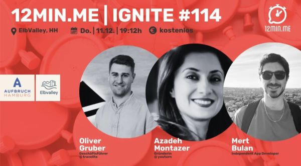 Mit 3x12 Minuten Vortrag und 3x12min FAQ werdet ihr wieder einen kurzweiligen und inspirierenden Abend mit 12min.me verbringen. Die Speaker:innen des Abends sind: